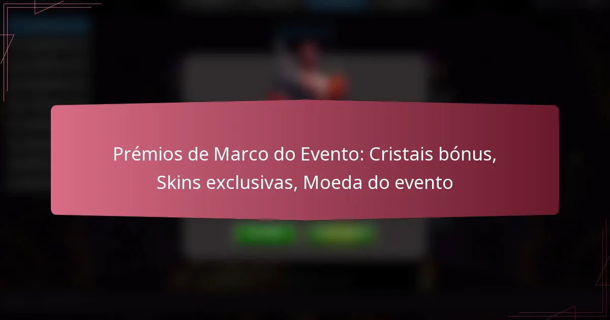 Os prémios de marcos de eventos são recompensas atribuídas aos participantes quando alcançam conquistas específicas durante um evento. Estes prémios servem para motivar e reconhecer os indivíduos pelos seus esforços e conquistas ao longo do evento.